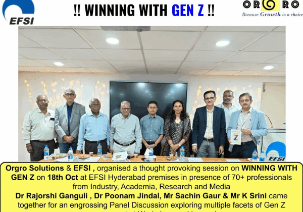 Orgro Solutions (www.orgro.world), in association with Employers Federation of South India (EFSI), organised an engaging session on ‘Winning with Gen Z: Connect-Engage-Lead’ on 18th Oct at EFSI Hyderabad.